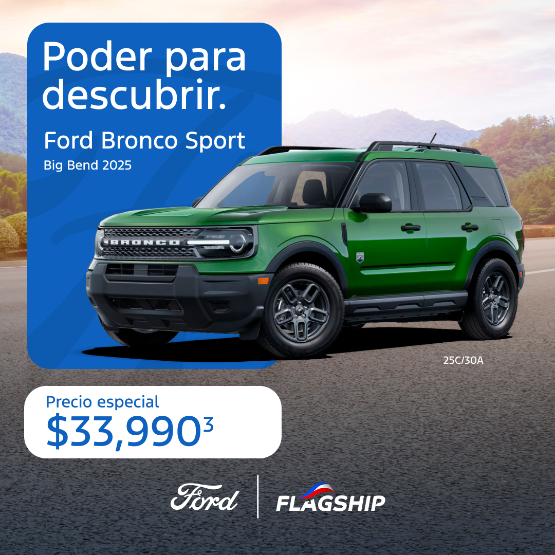 (1) Ford Explorer Base 2024 (1FMSK7BH5RGA75064) precio regular $ 45,481, bono $491 precio especial $44,990. (2) Ford Maverick XL 2024 $31,990, Bono de $2,000, Precio Especial: $29,990. (3) Ford F-150 STX SuperCrew 4x2 2024 precio regular $49,900 bono $2,905, precio especial $46,995. (4) Oferta Ford Bronco Sport 2024: Oferta desde 2.99% APR aplica a los modelos nuevos Ford Bronco Sport 2024 para clientes con puntuación de crédito de 750 en adelante. Oferta aplica al acogerse a pago directo. Sujeto a aprobación de crédito. Ciertas restricciones aplican. Ofertas no pueden combinarse con otras ofertas o descuentos y están sujetas a aprobación de crédito según parámetros de la institución financiera. Precios no incluyen gastos de originación, mantenimiento, ACAA, ni ningún tipo de seguro. Rendimiento de millas por galón según determinado por EPA y puede variar de acuerdo con los hábitos de conducir y condiciones de la carretera. Ofertas válidas del 1 de mayo de 2025 al 31 de mayo de 2025 o mientras dure el inventario en nuestros dealers Flagship Ford en Carolina, Ponce o Río Grande.